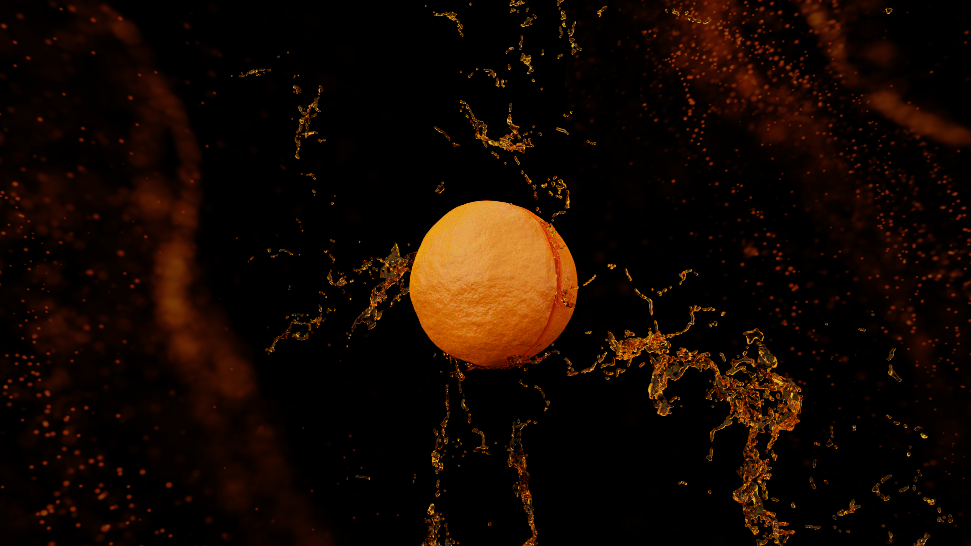 "Tango of Citrus," a breathtaking 3D animation that embodies the zenith of 3D modeling and design. In this enchanting spectacle, two halves of an orange, each a masterpiece of virtual craftsmanship, engage in a captivating dance, conjuring the very essence of nature through the art of fluid simulation.