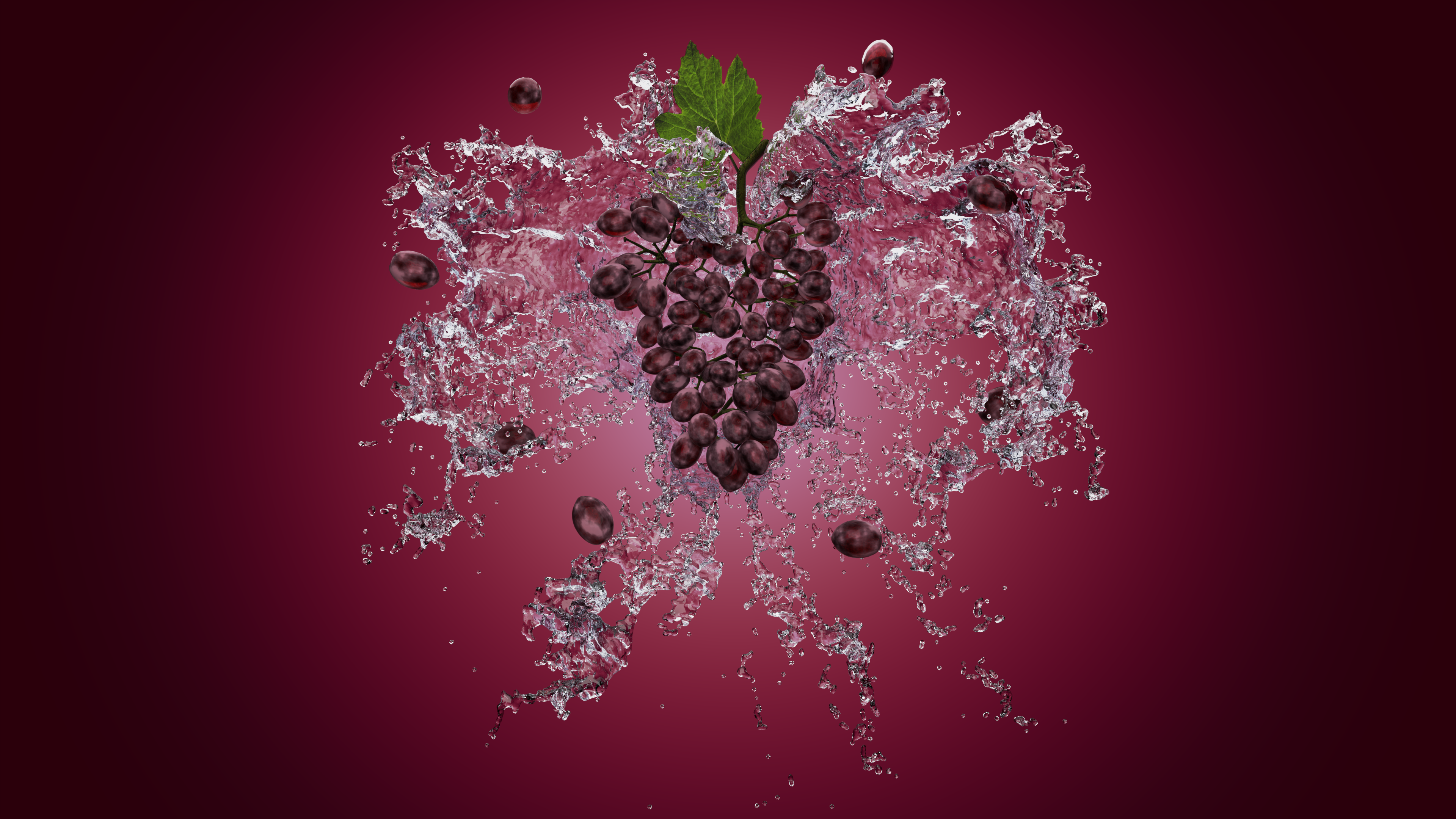"Grapes in the Flow" apart is its captivating liquid simulation. A torrent of crystal-clear water cascades through the grape bunch, invoking a symphony of motion and beauty. The grapes appear to dance in harmony with the fluid, each one surrendering to the liquid's graceful embrace while maintaining their form and vitality. It's a testament to my expertise in fluid dynamics and simulation, where I've achieved a seamless blend of realism and artistic expression.